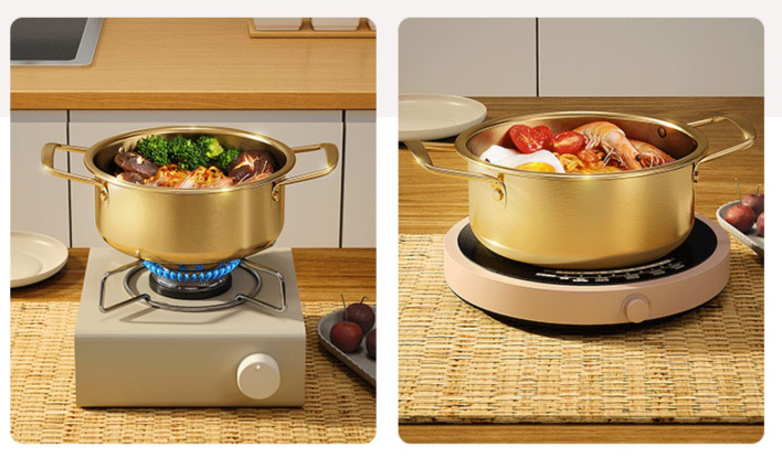 熱賣不銹鋼雙耳小煮鍋(金色)(尺寸:鍋總長24CM,鍋徑20CM,鍋高10.5CM)