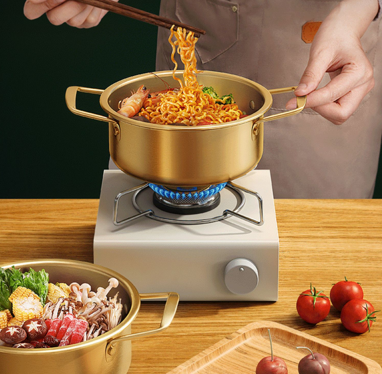 熱賣不銹鋼雙耳小煮鍋(金色)(尺寸:鍋總長31.5CM,鍋徑24CM,鍋高12.5CM)