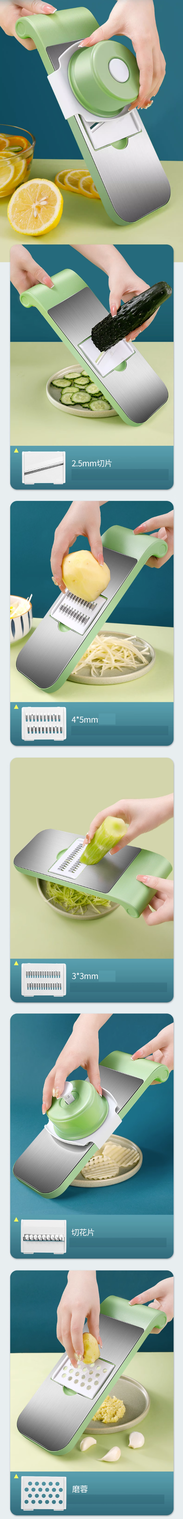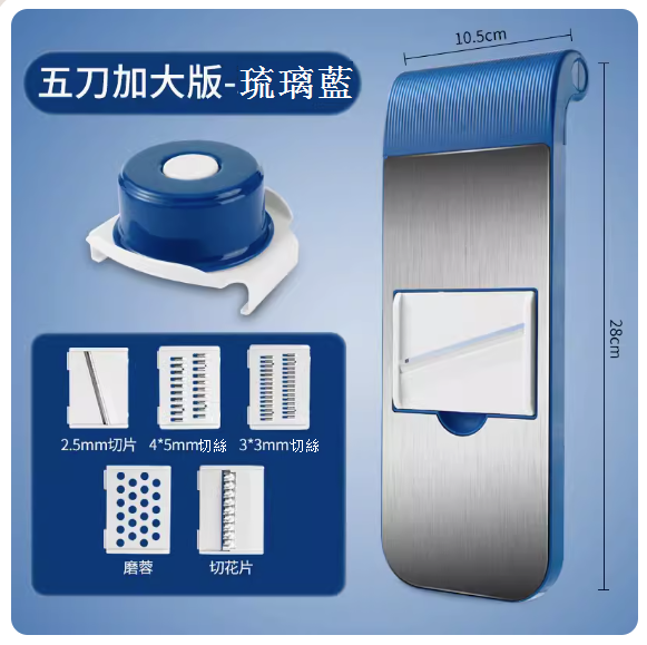 熱賣家用不鏽鋼多功能擦刨絲神器(五刀版-琉璃藍【送護手器】)
