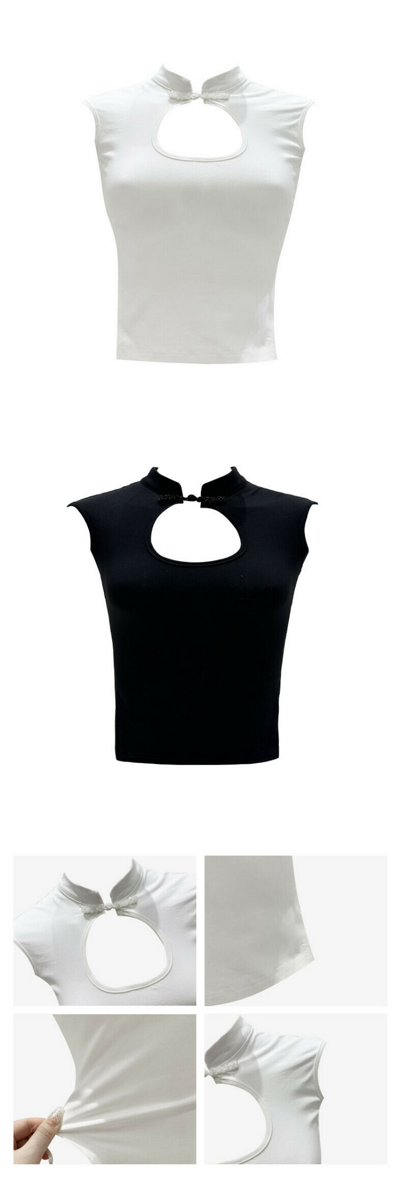 熱賣立領盤扣無袖T恤(白色 均碼)