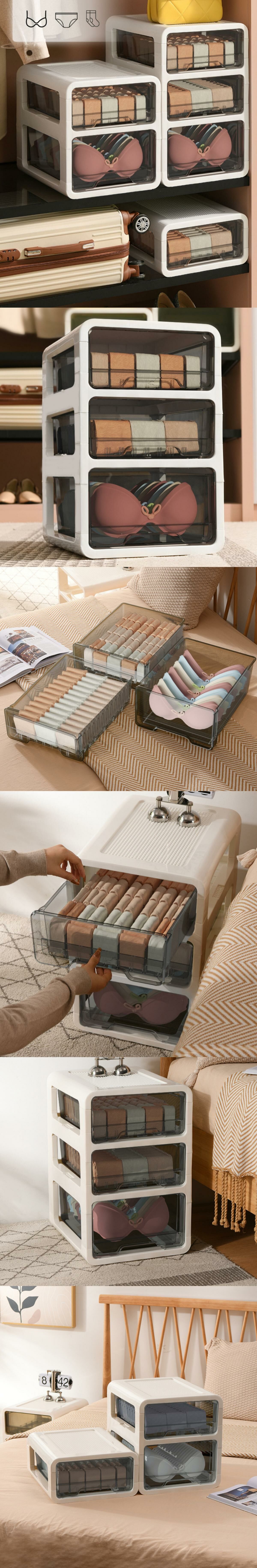 熱賣收納儲物盒帶抽屜【文胸(無分格)+襪子(24分格)組合兩件套】