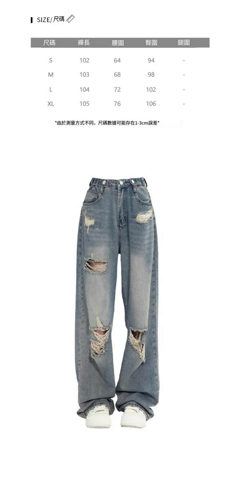 熱賣直筒破洞牛仔褲(藍色 均碼)