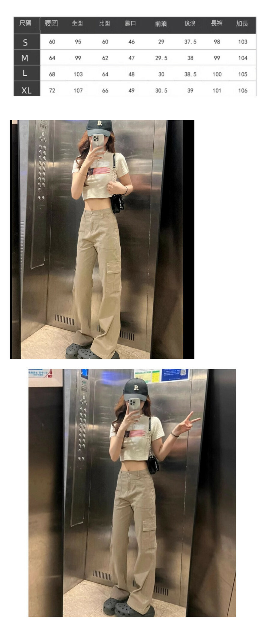 熱賣直筒闊腿拖地工裝褲【卡其色長褲】尺碼【S碼—XL碼】【下單後請聯絡客服確認發貨尺碼】