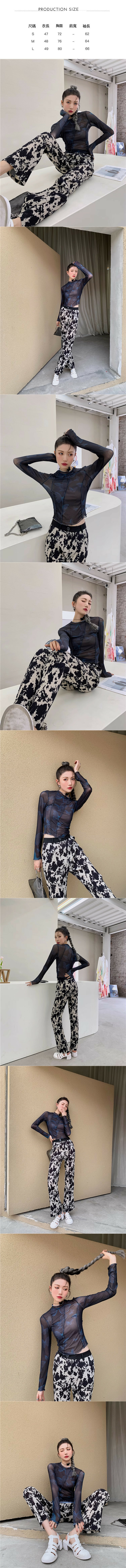 熱賣彈力網紗長袖打底衫(桔黑色)(S-L碼)(下單後聯絡客服確認發貨尺碼)