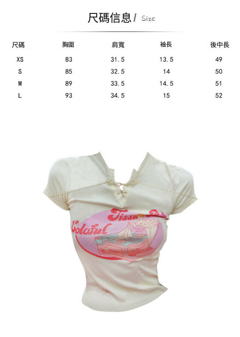 熱賣彈力印花T恤(奶黃色 S碼-L碼)(下單後請聯絡客服確認發貨尺碼)