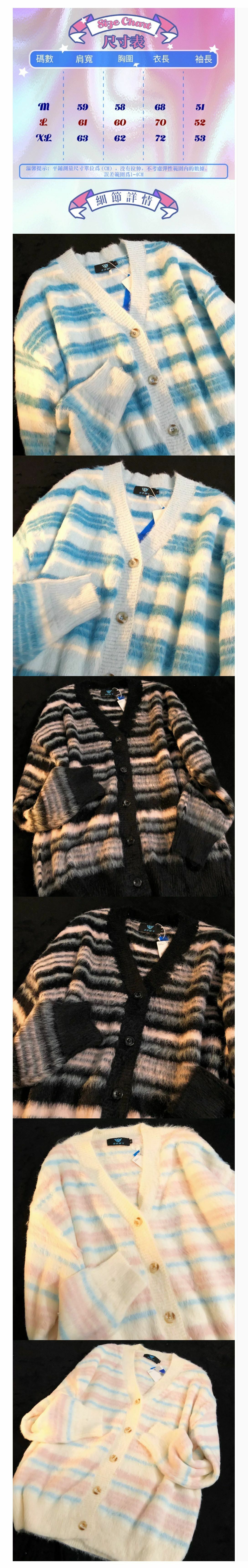 熱賣條紋拼色開衫慵懶毛衣【黑色】【M-XL碼】(下單後請聯絡客服確認發貨尺碼)