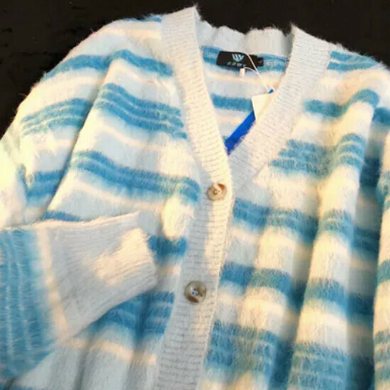 熱賣條紋拼色開衫慵懶毛衣【藍色】【M-XL碼】(下單後請聯絡客服確認發貨尺碼)