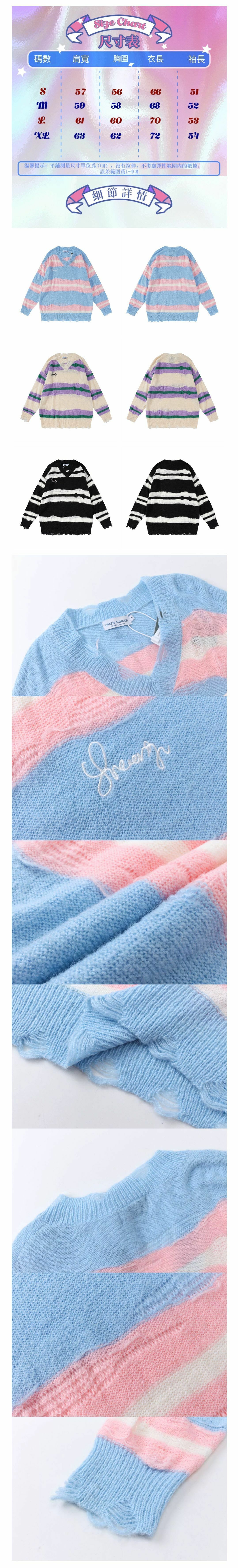 熱賣條紋拼色破邊情侶針織衫【藍色】【S-XL碼】(下單後請聯絡客服確認發貨尺碼)