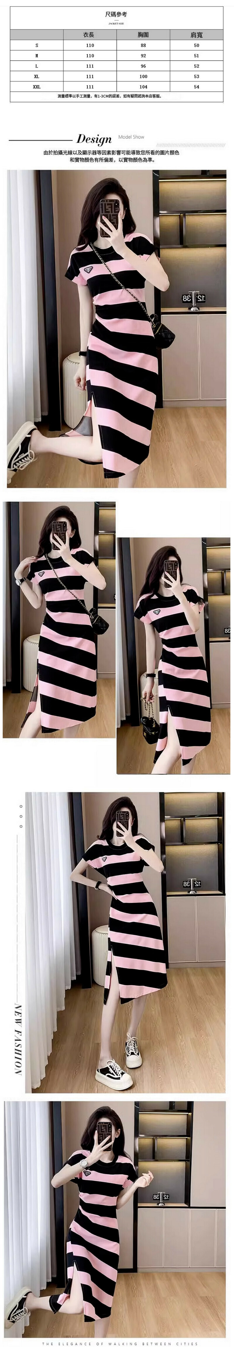 熱賣條紋連衣裙(粉黑色 S碼-XXL碼)(下單後請聯絡客服確認發貨尺碼)