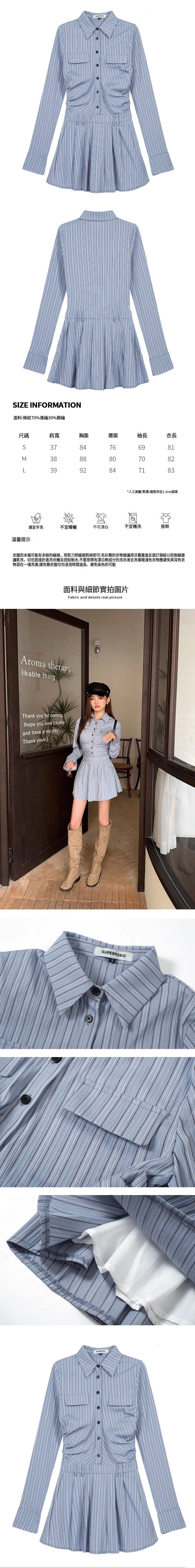 熱賣條紋襯衫連衣短裙(藍色條紋)(S-L碼)(下單後聯絡客服確認發貨尺碼)