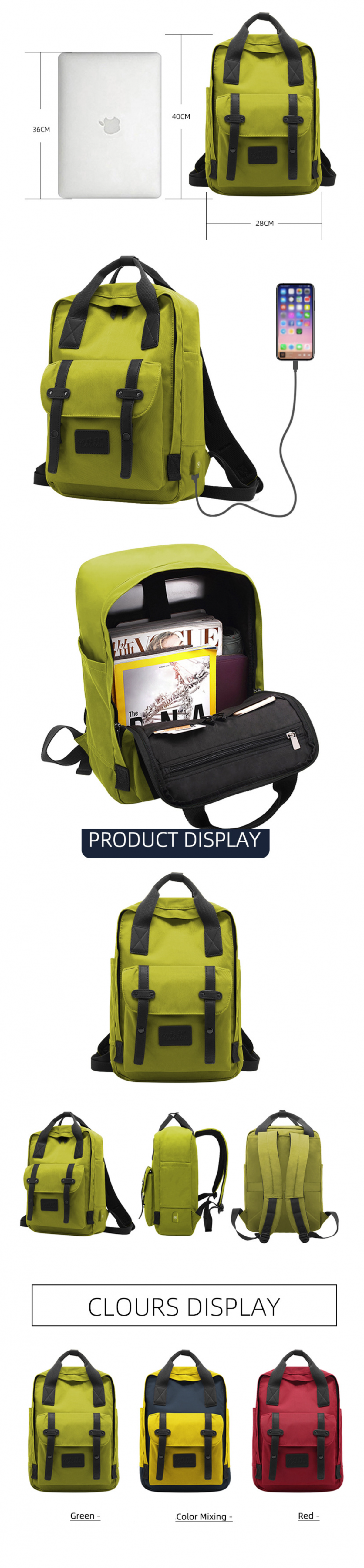 熱賣學生牛津布撞色防水減壓usb充電雙肩背包(藍柳丁撞色長28cm*寬13cm*高40cm*))