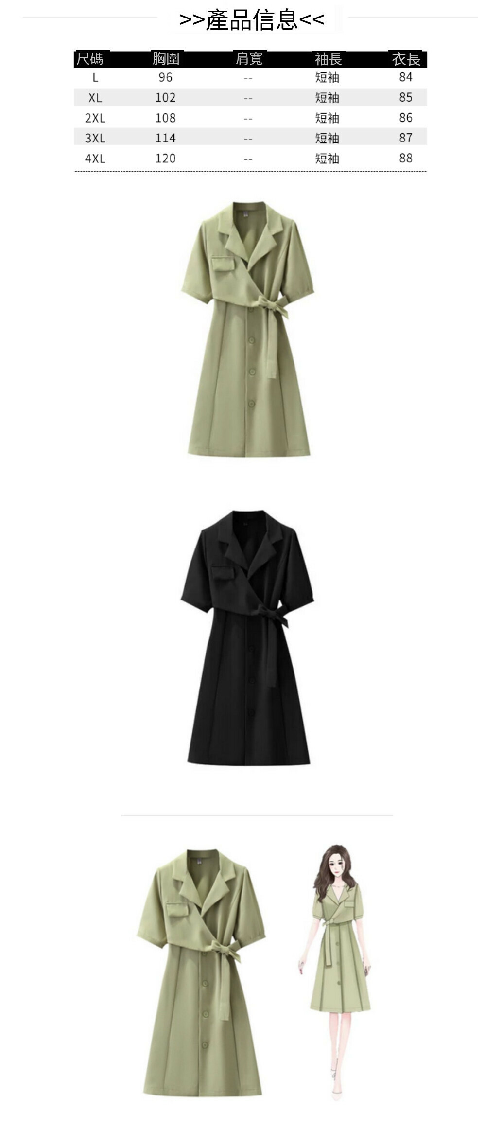 熱賣西裝領連衣裙【綠色】【M-4XL碼】(下單後請聯絡客服確認發貨尺碼)