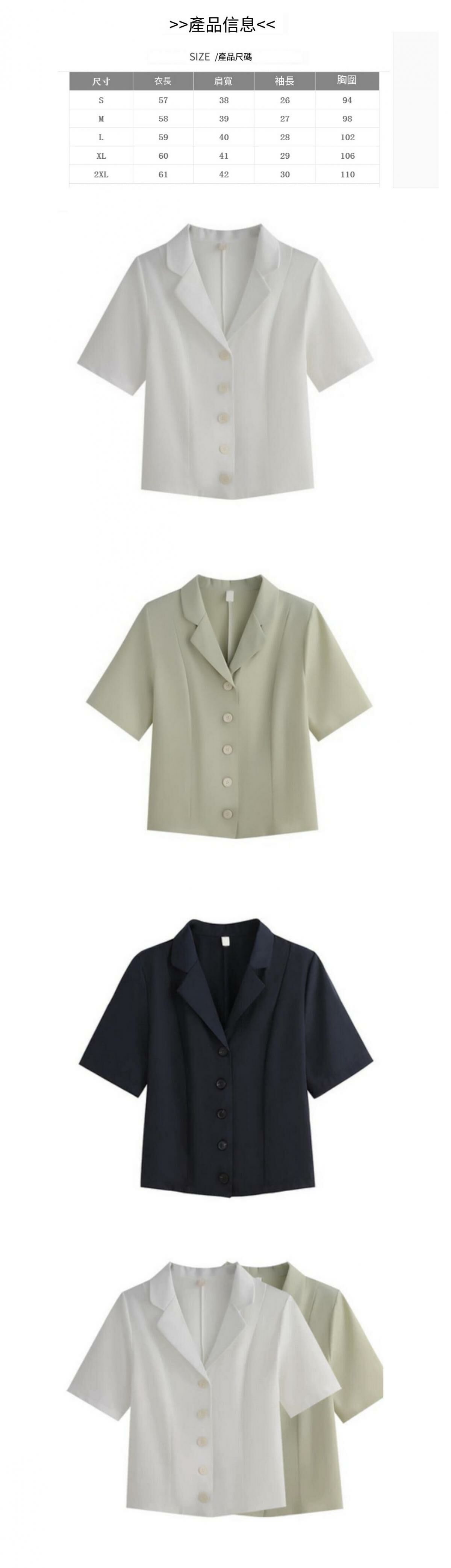 熱賣西裝領短袖襯衫【白色】【S-2XL碼】(下單後請聯絡客服確認發貨尺碼)