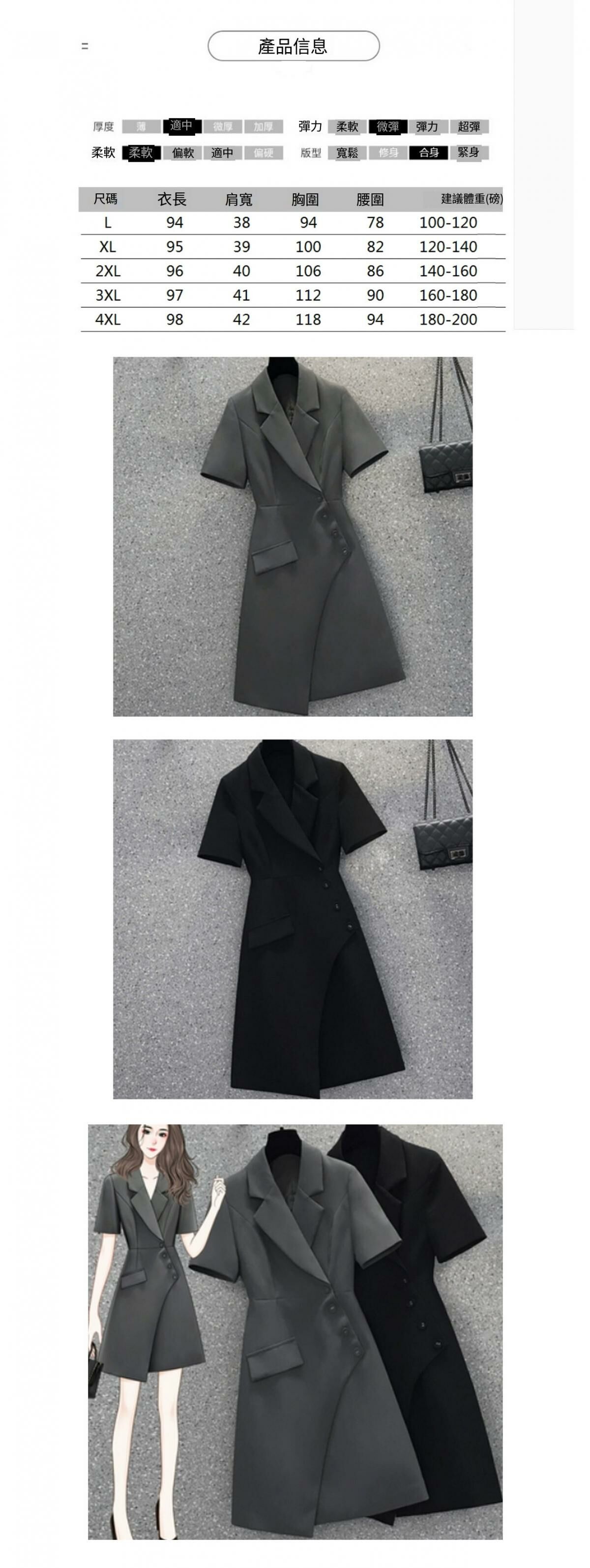 熱賣西裝連衣裙【黑色】【L-4XL碼】(下單後請聯絡客服確認發貨尺碼)
