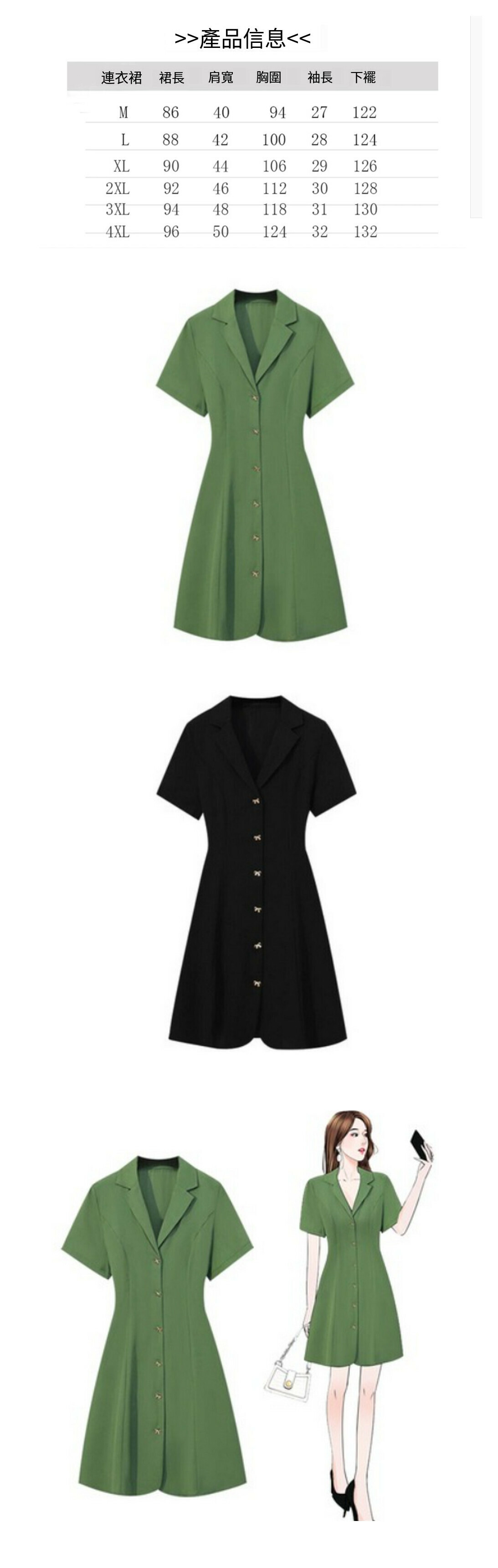 熱賣西裝連衣裙【草綠色】【M-4XL碼】(下單後請聯絡客服確認發貨尺碼)
