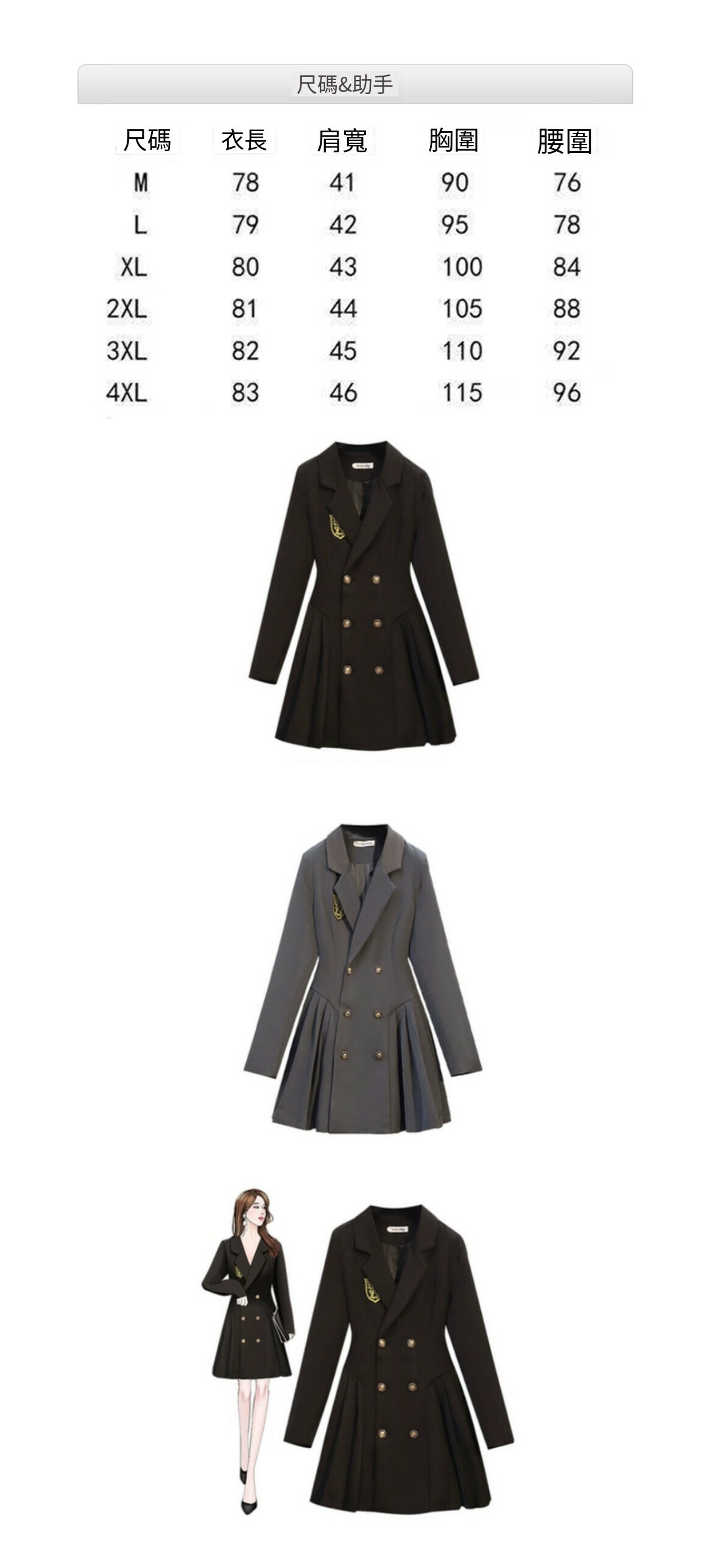 熱賣西裝連衣裙春款【灰色】【M-4XL碼】(下單後請聯絡客服確認發貨尺碼)