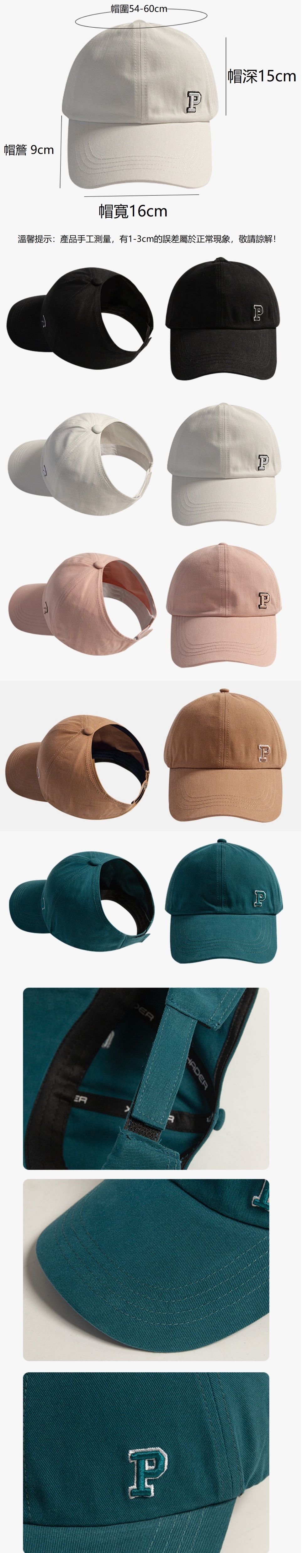 熱賣遮陽空頂鴨舌帽子【373米色P字母空頂鴨舌帽】【可調節54-60cm(成人)】