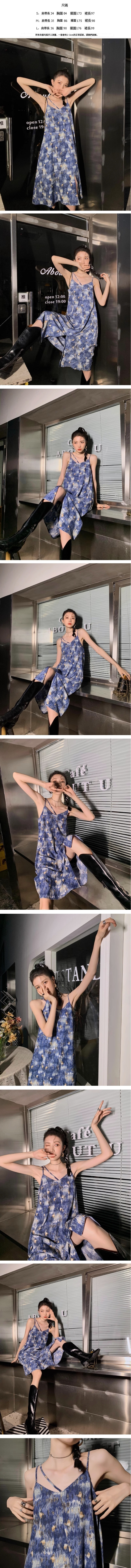 熱賣吊帶碎花連衣裙(藍色)((S-L碼))(下單後聯絡客服確認發貨尺碼)