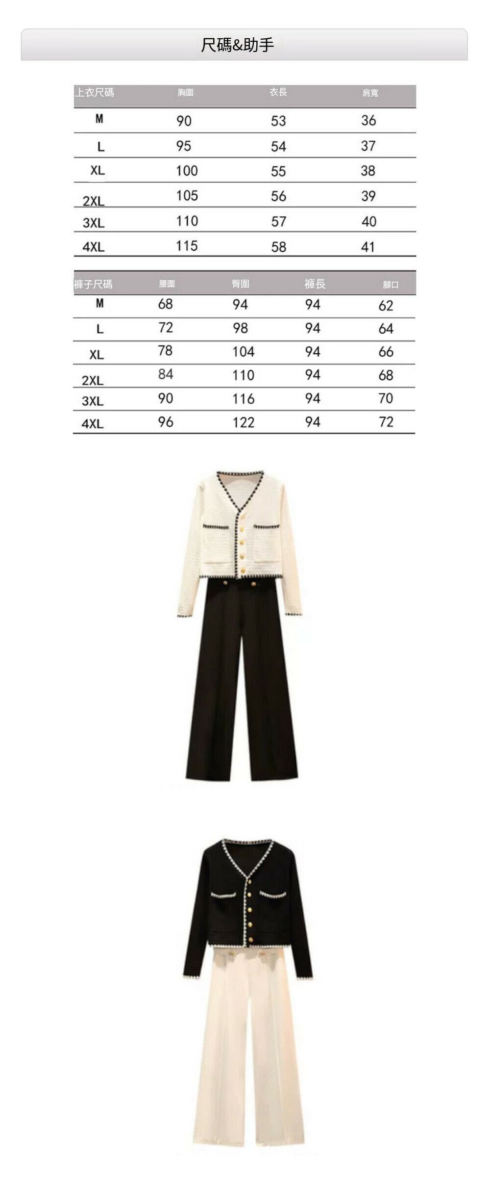 熱賣針織衫+直筒褲套裝【白+黑】【M-4XL碼】(下單後請聯絡客服確認發貨尺碼)