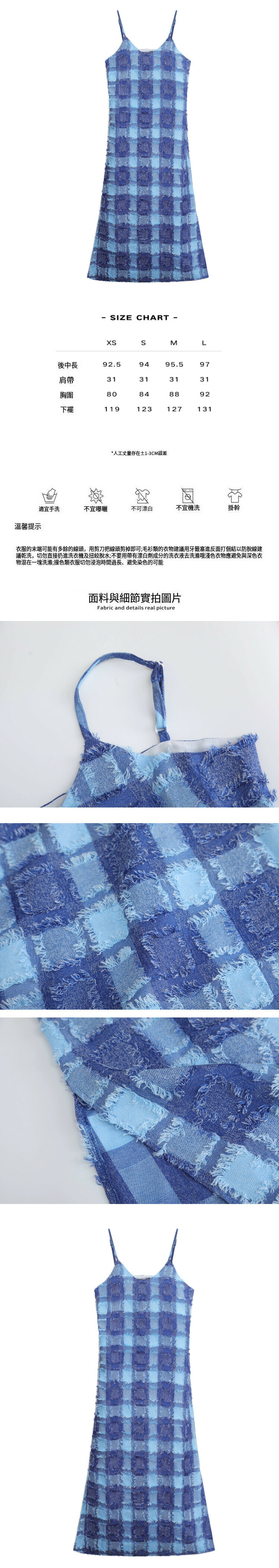 熱賣流蘇棋盤格吊帶裙(牛仔藍)(XS-L碼)(下單後聯絡客服確認發貨尺碼)