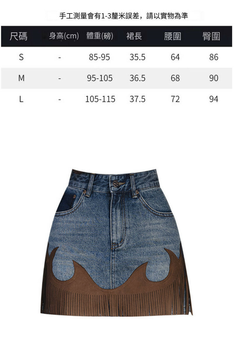 熱賣流蘇拼接牛仔半裙(藍色 S碼-L碼)(下單後請聯絡客服確認發貨尺碼)