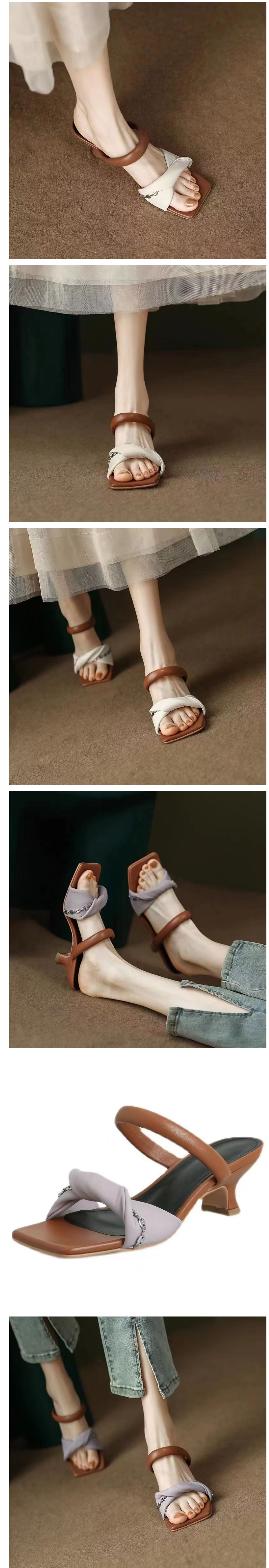 熱賣粗跟小香風復古拼色拖鞋(米白色35-40碼)(下單後聯絡客服確認發貨尺碼)