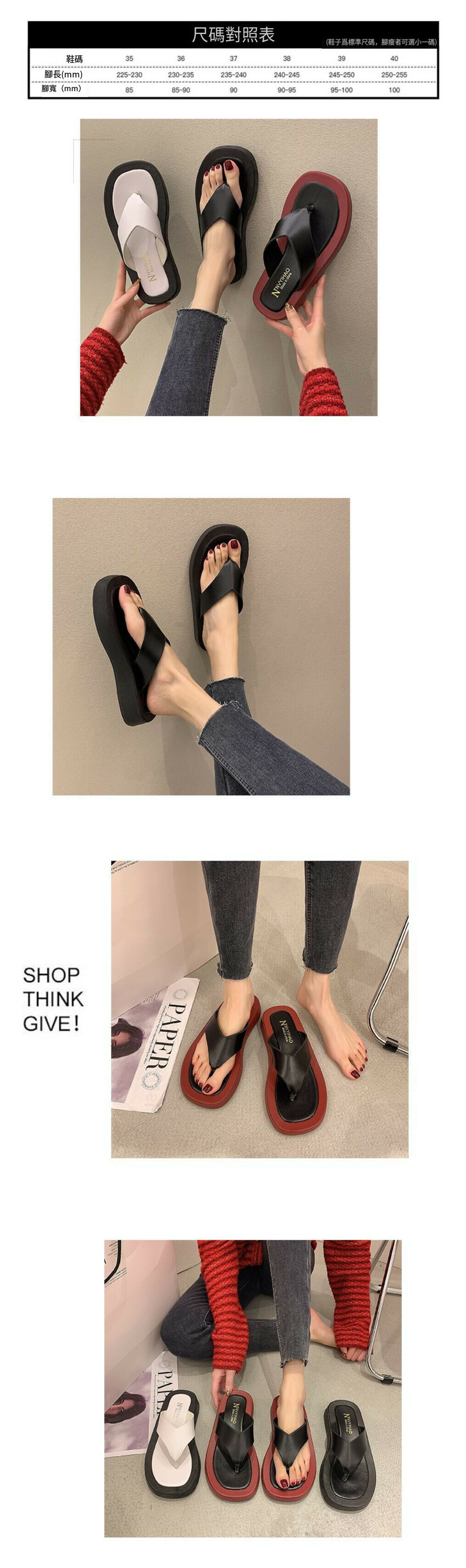 熱賣厚底人字拖鞋【黑色】【35-40碼】(下單後請聯絡客服確認發貨尺碼)