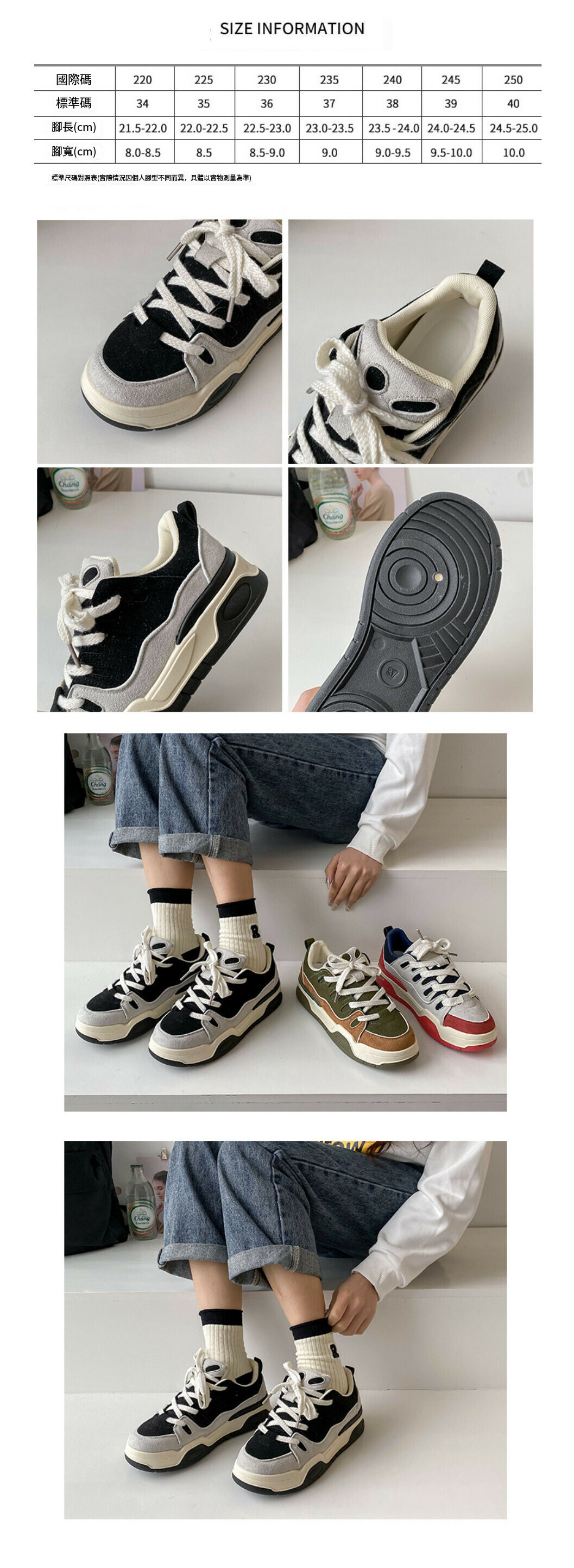 熱賣厚底運動板鞋【黑色】【35-40碼】(下單後請聯絡客服確認發貨尺碼)