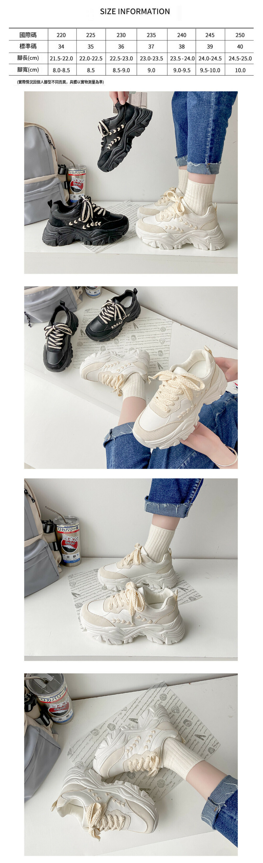熱賣厚底百搭運動鞋【黑色】【35-40碼】(下單後請聯絡客服確認發貨尺碼)