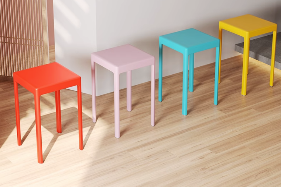 熱賣加厚可疊放簡約塑料方凳(實心腿-深藍)(尺寸:28*28*46CM)