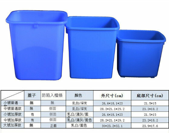 熱賣加厚塑膠方形無蓋垃圾桶(小號-藍色)