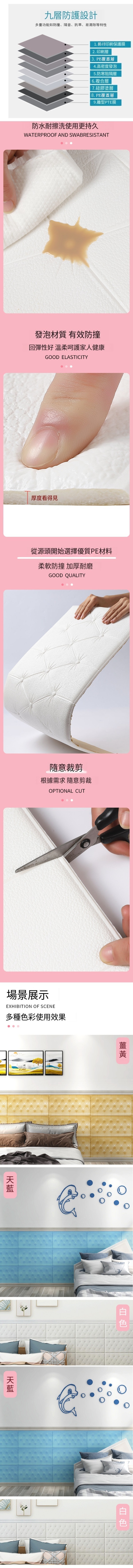 熱賣加厚自粘防撞軟包墻貼墻面貼紙【菱形淺藍色榻榻米 30*60CM厚8MM】