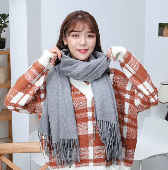 熱賣加厚保暖羊絨圍巾(麻灰色)(尺寸:200*70cm)