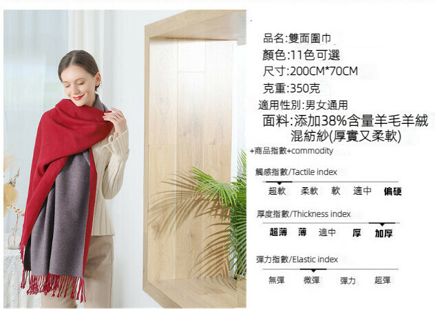 熱賣加厚保暖雙面圍巾(淺灰黑色)(尺寸:200*70cm)