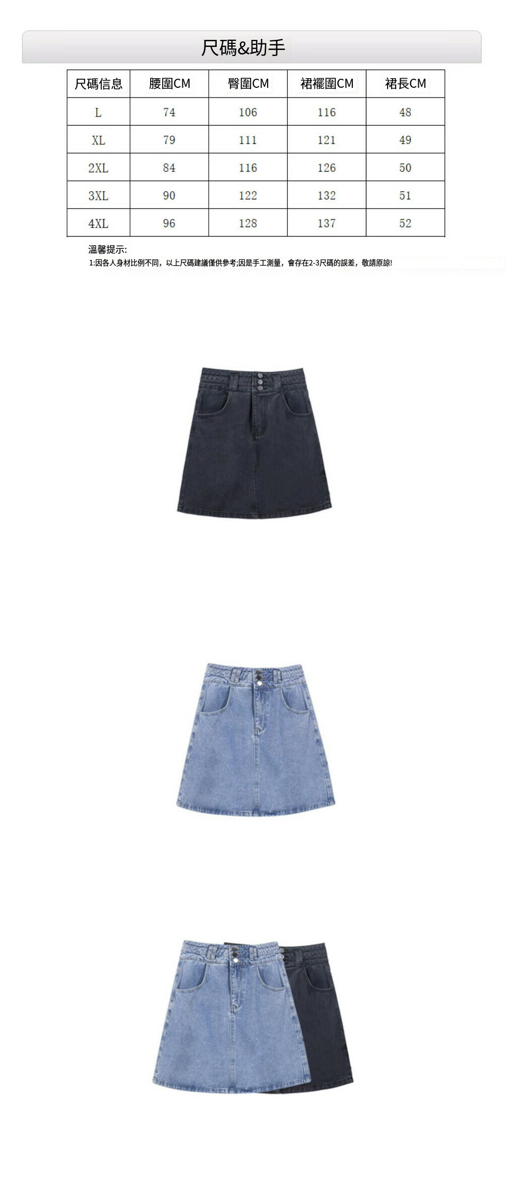 熱賣薄款牛仔半身裙【藍色】【L-4XL碼】(下單後請聯絡客服確認發貨尺碼)