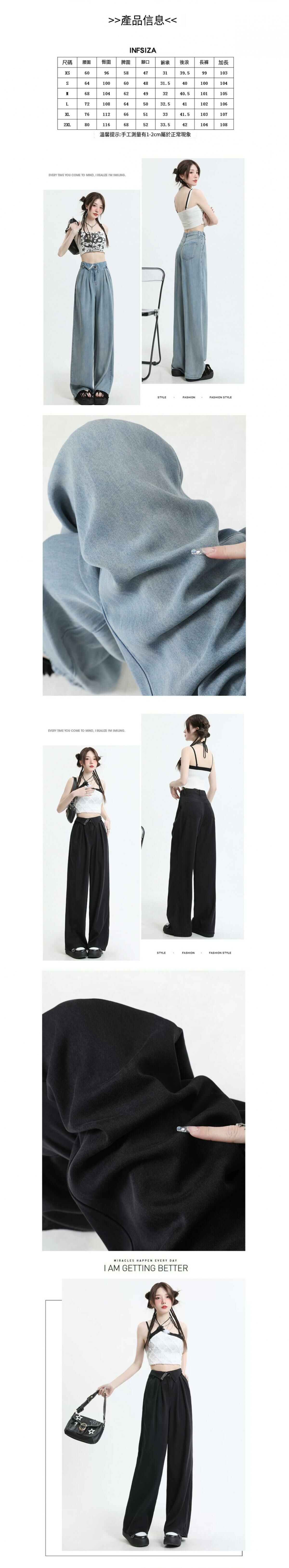 熱賣薄款闊腿牛仔褲【黑色(加長)】【XS-2XL碼】(下單後請聯絡客服確認發貨尺碼)