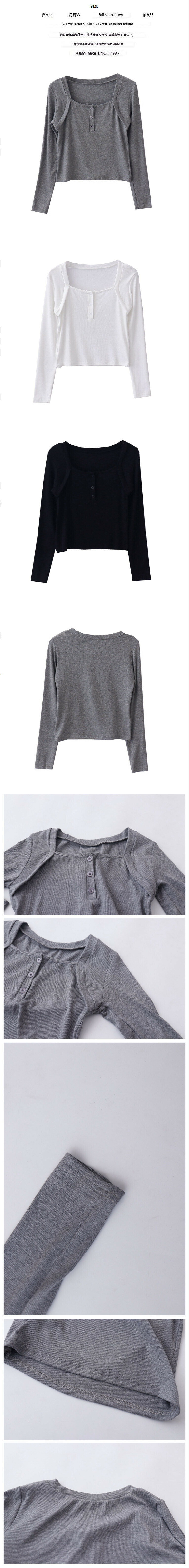 熱賣三粒扣修身針織T恤【黑色】【均碼】