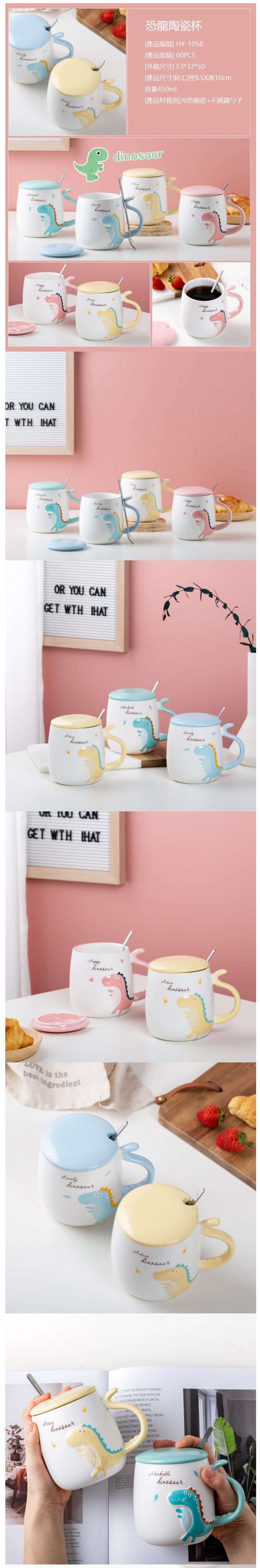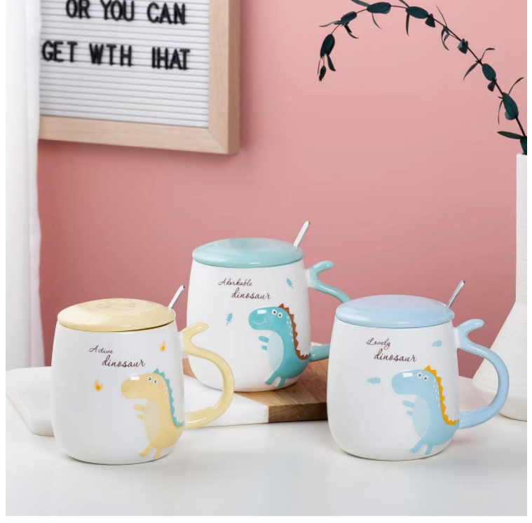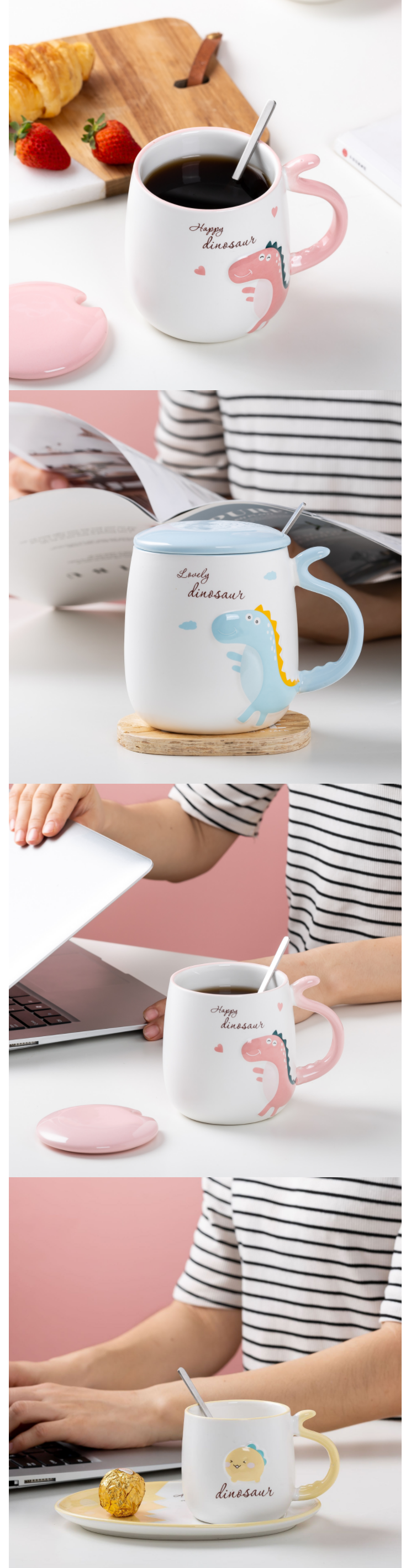 熱賣立體卡通高顏值馬克杯(藍色恐龍)(容量:450ml)