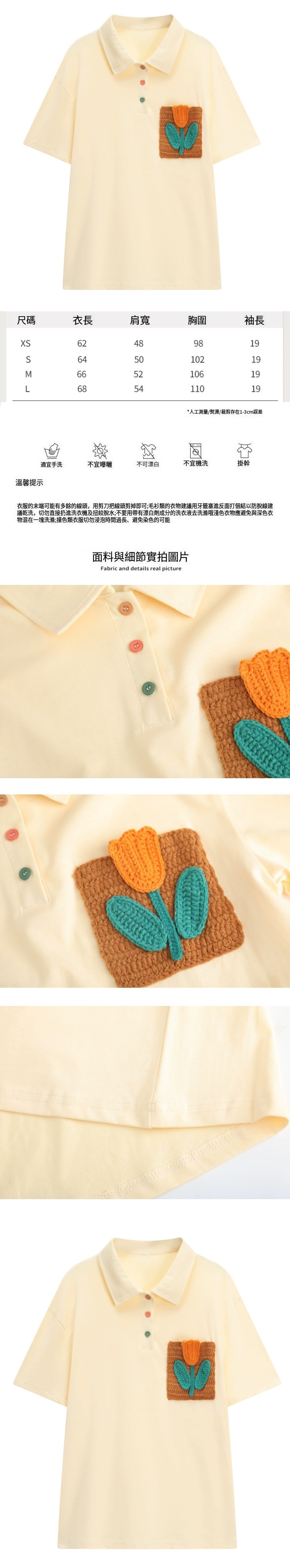 熱賣立體鉤花短袖T恤(米黃色)(XS-L碼)(下單後聯絡客服確認發貨尺碼)