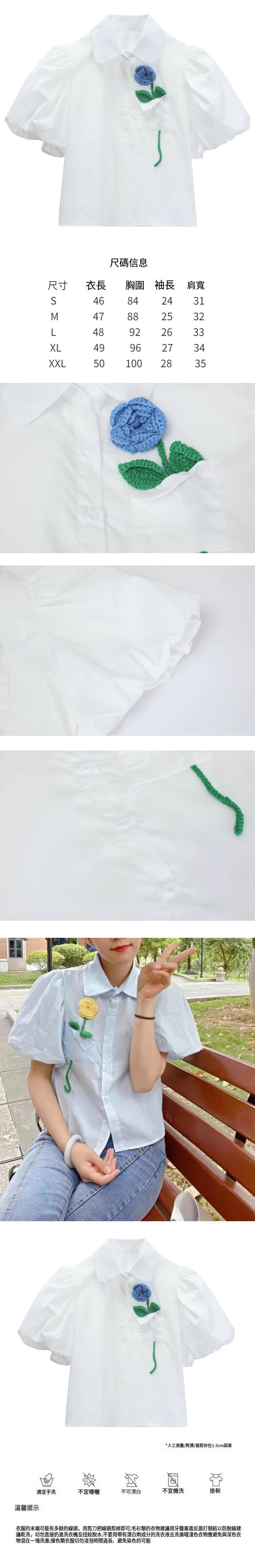 熱賣立體花朵短袖襯衫(白色)(S-2XL碼)(下單後聯絡客服確認發貨尺碼)