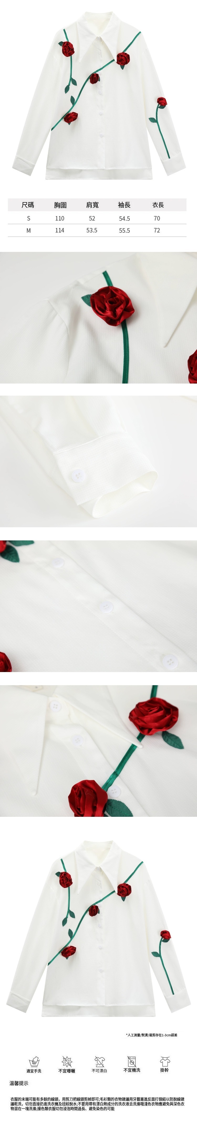 熱賣立體紅玫瑰花朵襯衫(白色)(S-L碼)(下單後聯絡客服確認發貨尺碼)