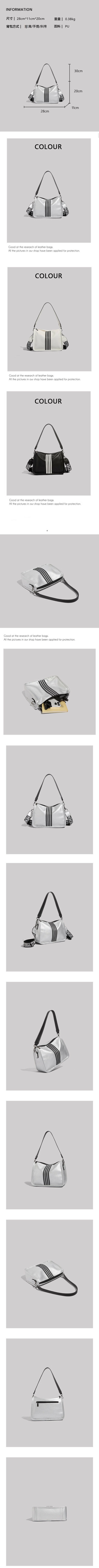 熱賣三條杠腋下包百搭寬肩帶單肩斜挎包【黑色】【尺寸:28cm*11cm*20cm】