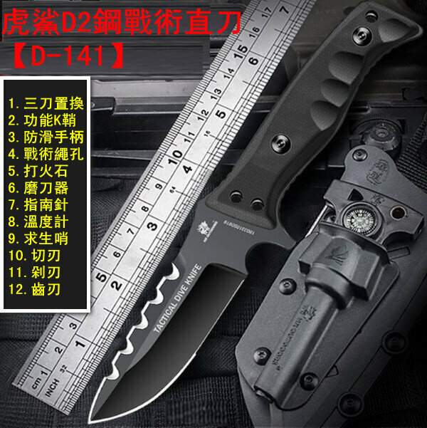 熱賣虎鯊D2鋼戰術直刀直刀【D-141】全長230mm