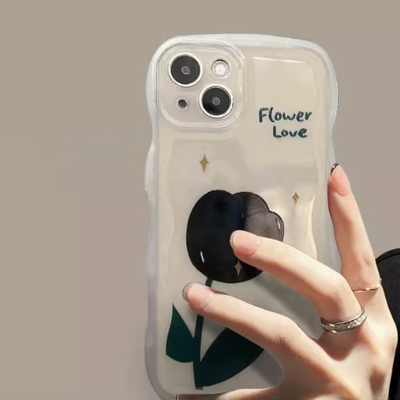 熱賣透黑波浪邊郁金香適用於OPPO_realme手機殼(透白_郁金香【單殼】(下單後聯絡客服確認手機型號)