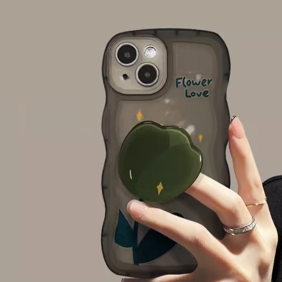 熱賣透黑波浪邊郁金香適用於OPPO_realme手機殼(透黑_郁金香+郁金香支架(下單後聯絡客服確認手機型號)