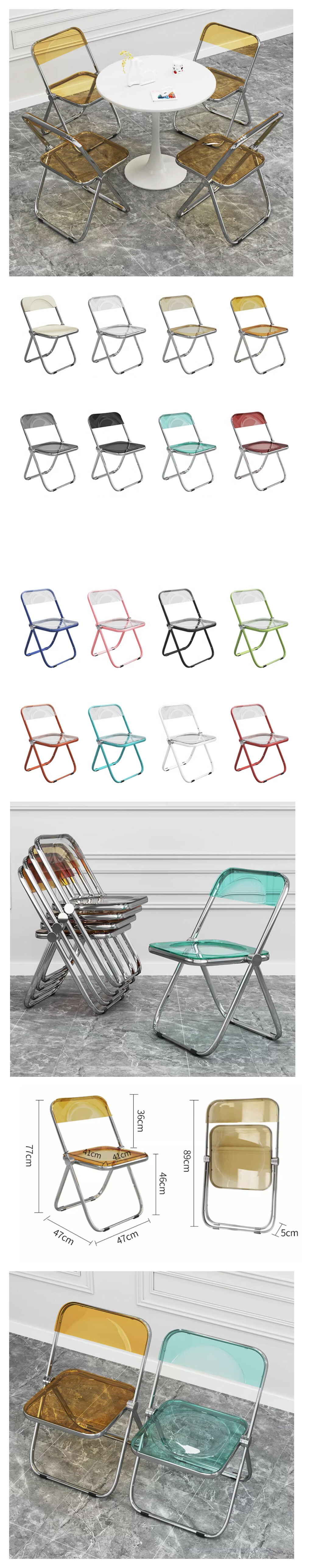 熱賣透明便攜靠背折疊椅(加強品質-青色【電鍍支架】升級PC材質)(尺寸:展開高77CM,坐寬41CM)