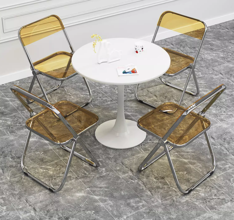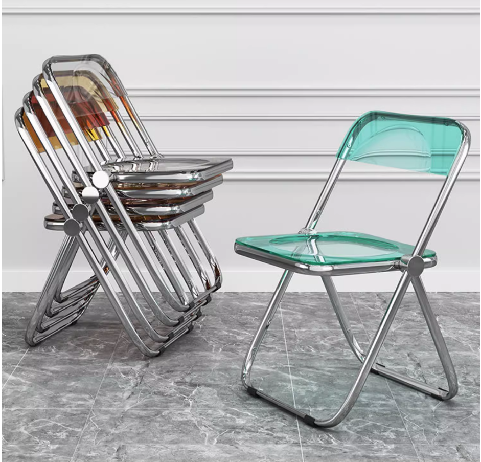 熱賣透明便攜靠背折疊椅(加強品質-灰色【電鍍支架】升級PC材質)(尺寸:展開高77CM,坐寬41CM)