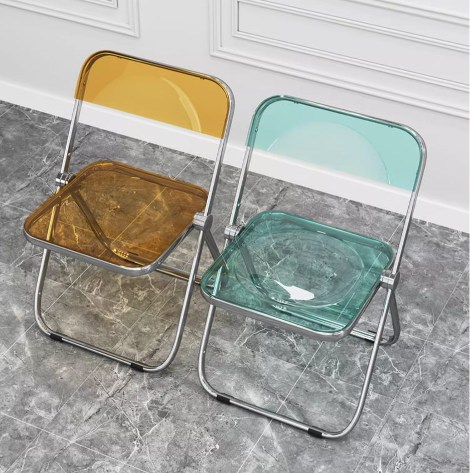 熱賣透明便攜靠背折疊椅(加強品質-透明【電鍍支架】升級PC材質)(尺寸:展開高77CM,坐寬41CM)