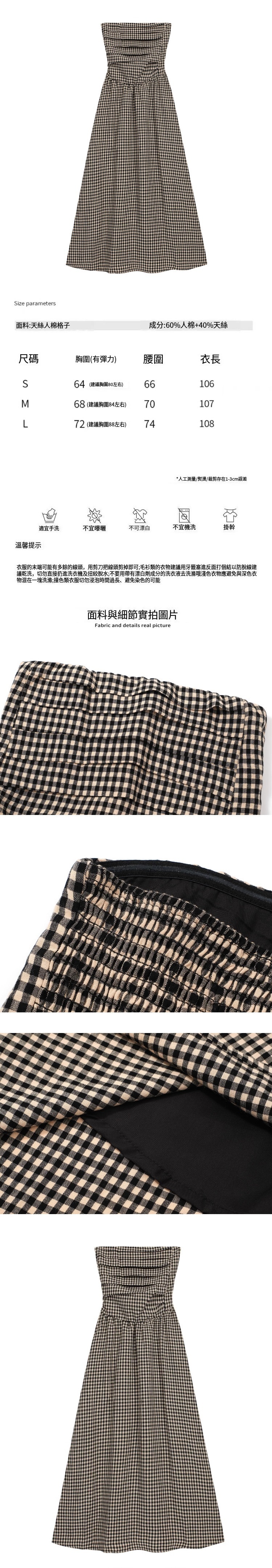 熱賣抹胸格子連衣裙(格子)(S-L碼)(下單後聯絡客服確認發貨尺碼)