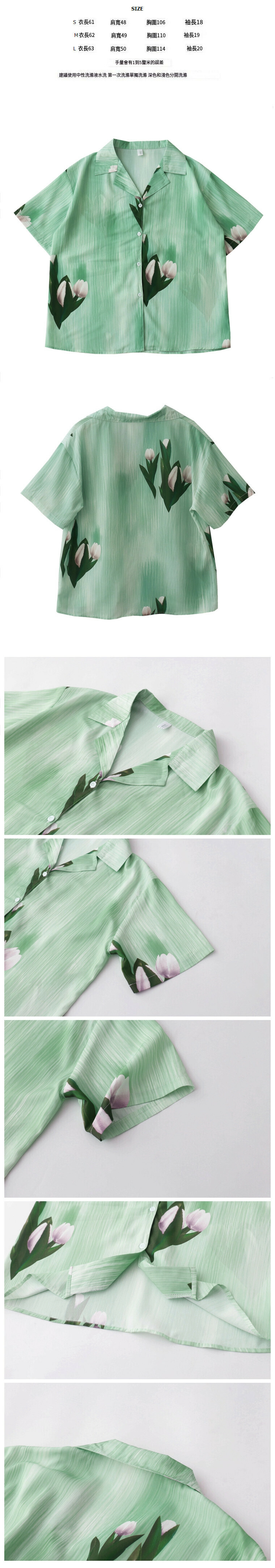 熱賣鬱金香印花襯衫【綠色】【S碼-L碼】(下單後請聯絡客服確認發貨尺碼)